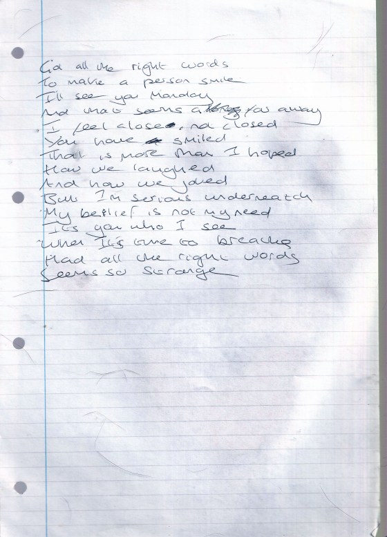 All The Right Words – Written October 1997 (Aged 22)