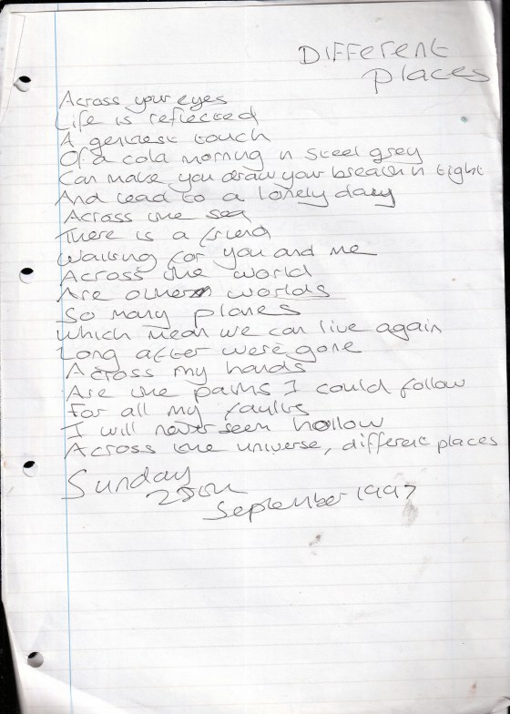 Different Places – Written Sunday 28th September 1997 (Aged 22)