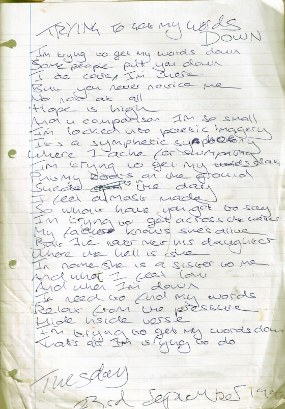 Trying To Get My Words Down – Written Tuesday 23rd September 1997 (Aged 22)