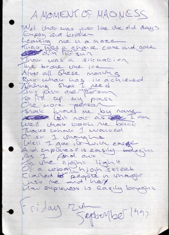 A Moment Of Madness – Written Friday 12th September 1997 (Aged 22)