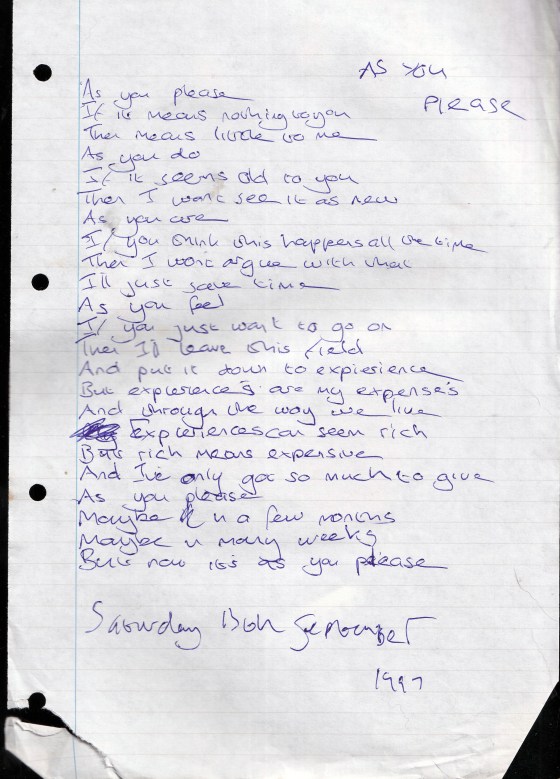 As You Please – Written Monday 13th September 1997 (Aged 22)