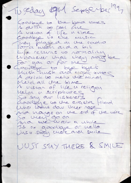 Just Stay There And Smile – Written Tuesday 9th September 1997 (Aged 22)
