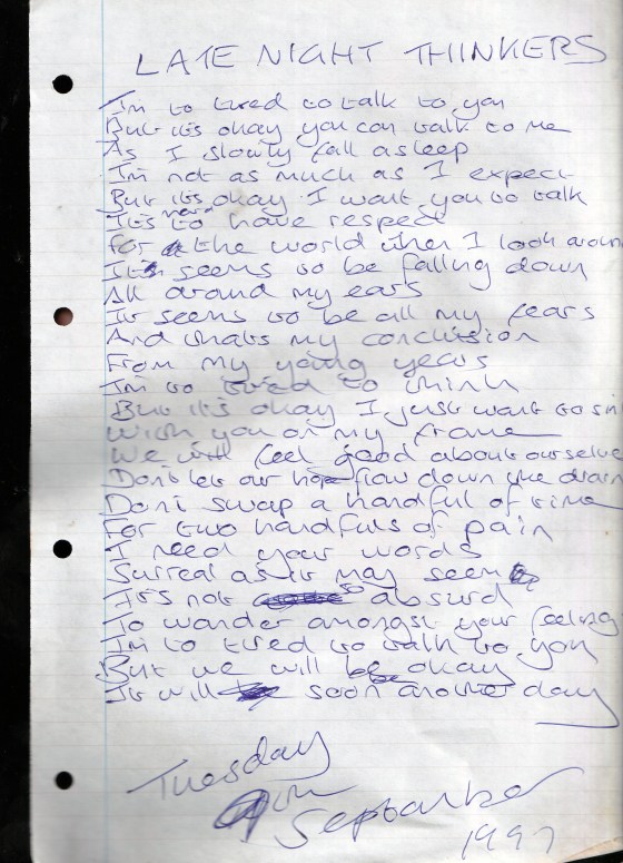 Late Night Thinkers – Written Tuesday 9th September 1997 (Aged 22)