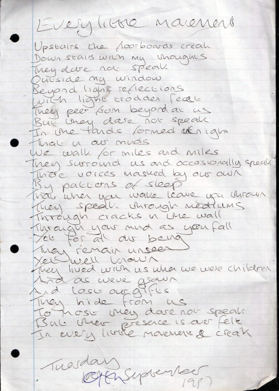 Every Little Moment – Written Tuesday 9th September 1997 (Aged 22)