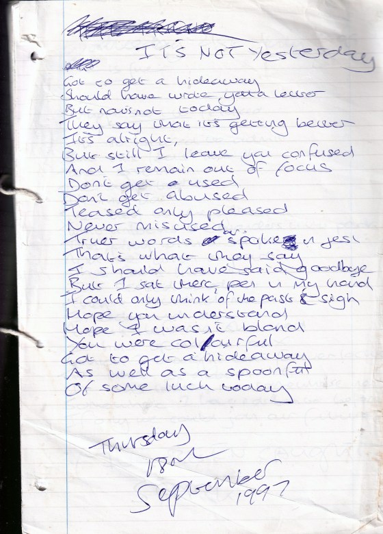 It Is Not Yesterday – Written Thursday 18th September 1997 (Aged 22)