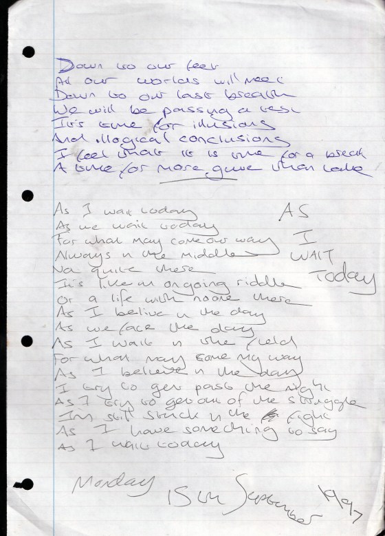 Down To Our Feet – Written Monday 15th September 1997 (Aged 22)