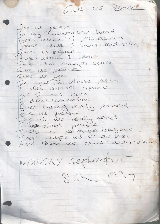 Give Us Peace – Written Monday 8th September 1997 (Aged 22)