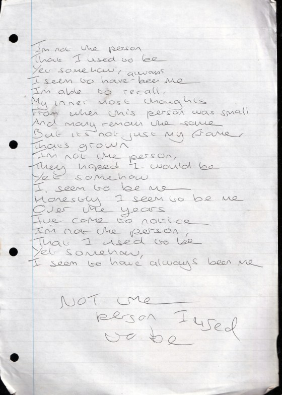 Not The Person I Used To Be – Written September 1997 (Aged 22)