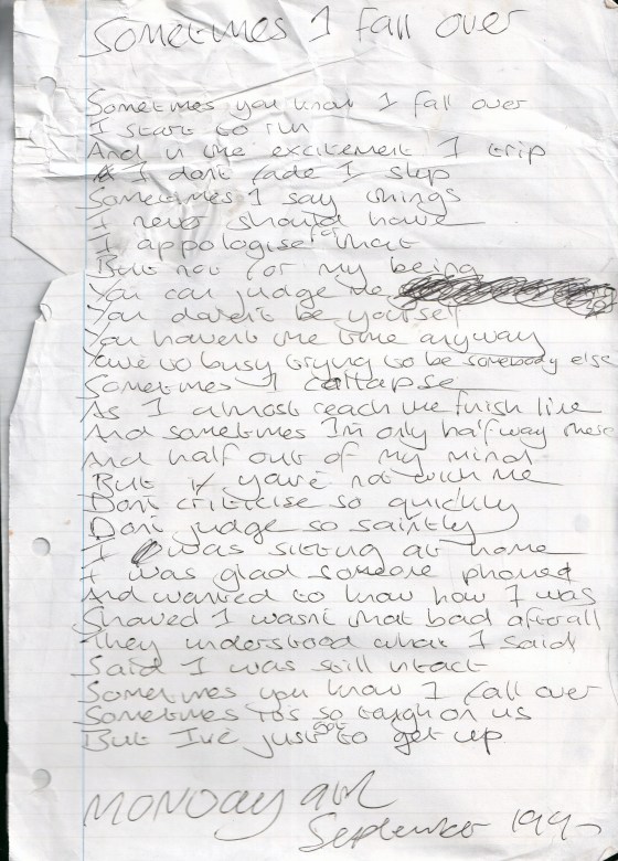 Sometimes I Fall Over – Written Monday 9th September 1997 (Aged 22)