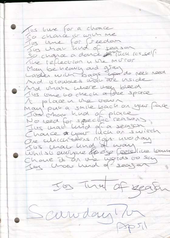 It Is That Kind of Season – Written Saturday 17th April 1999 (Aged 24)