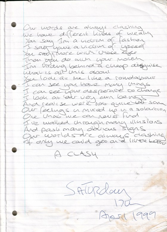 A Clash – Written Saturday 17th April 1999 (Aged 24)