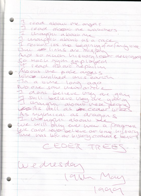 Cedar Trees – Written Wednesday 19th May 1999 (Aged 24)