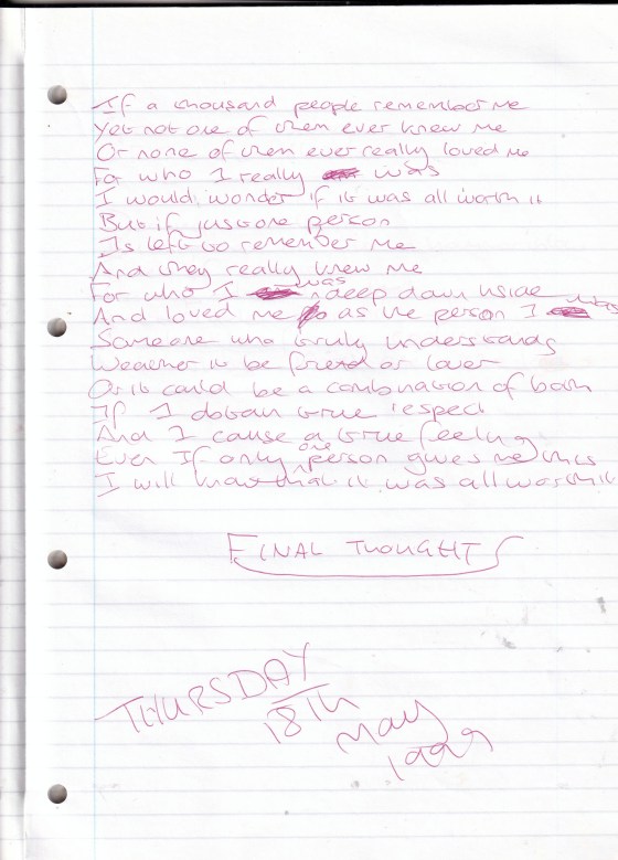 Final Thoughts – Written Thursday 18th May 1999 (Aged 24)