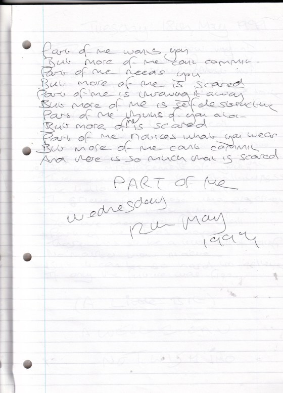 Part of Me – Written Wednesday 12th May 1999 (Aged 24) v
