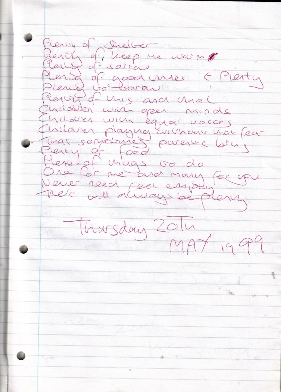 Plenty – Written Thursday 20th May 1999 (Aged 24)