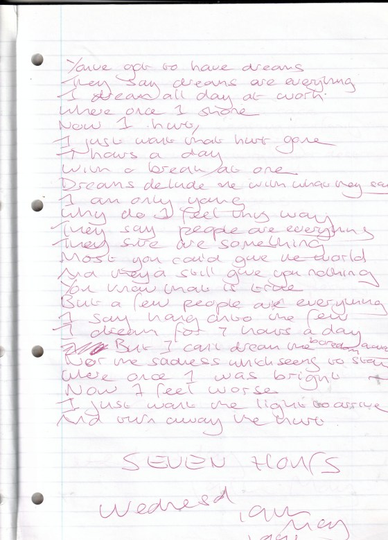 Seven Hours – Written Wednesday 19th May 1999 (Aged 24)