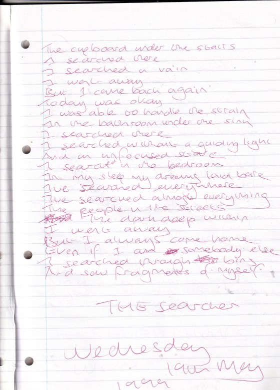 The Searcher – Written Wednesday 19th May 1999 (Aged 24)