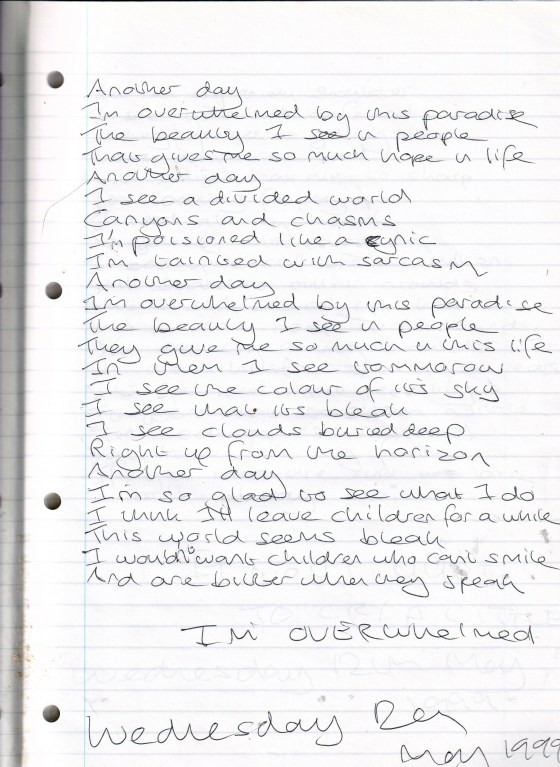 I Am Overwhelmed – Written Wednesday 12th May 1999 (Aged 24)
