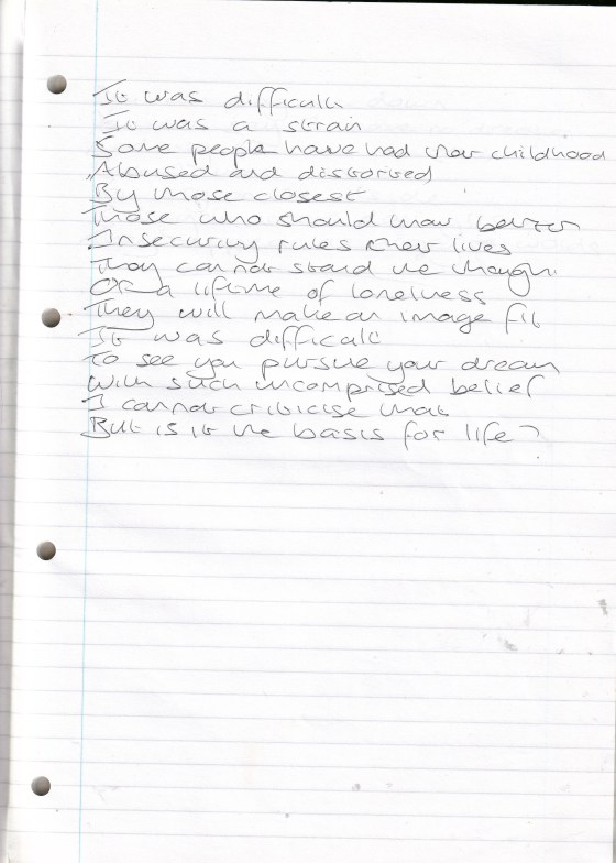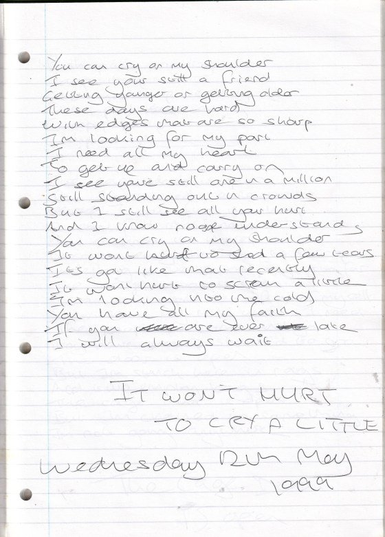 It Won’t Hurt to Cry a Little – Written Wednesday 12th May 1999 (Aged 24)