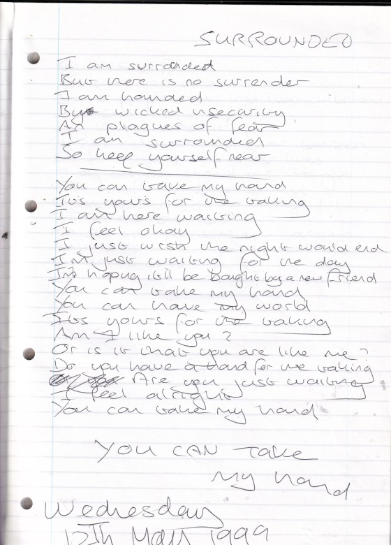 You Can Take My Hand – Written Wednesday 12th May 1999 (Aged 24)