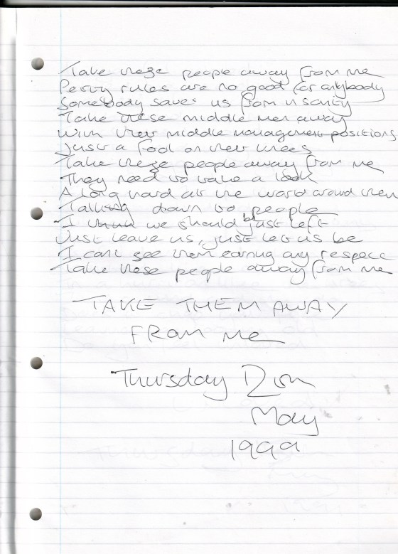 Take These People Away From Me – Written Thursday 13th May 1999 (Aged 24)