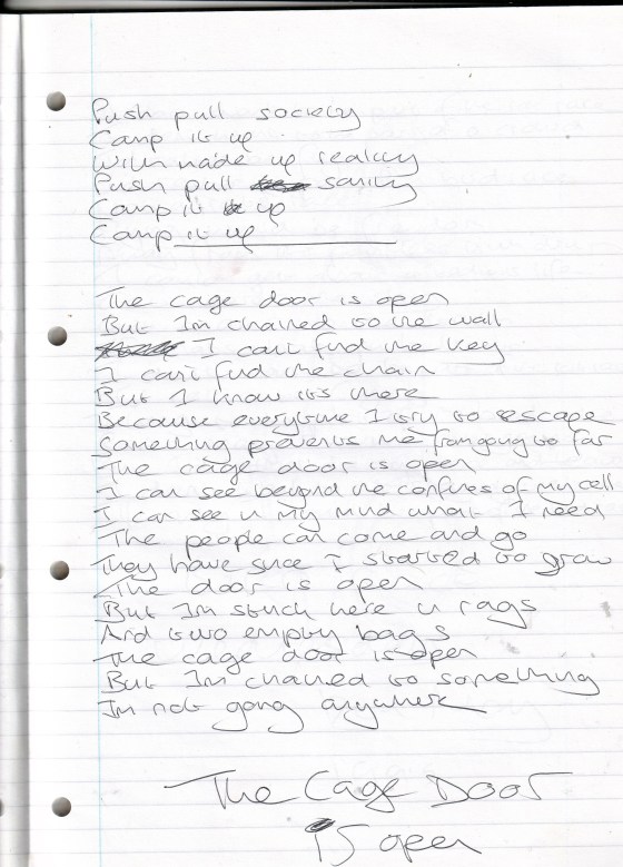 The Cage Door is Open – Written May 1999 (Aged 24)