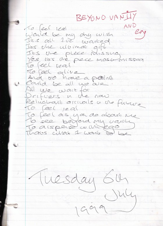 Beyond Vanity and Ego – Written Tuesday 6th July 1999 (Aged 24)
