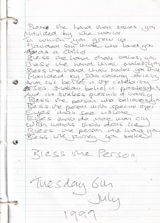 Bless the Person – Written Tuesday 6th July 1999 (Aged 24)