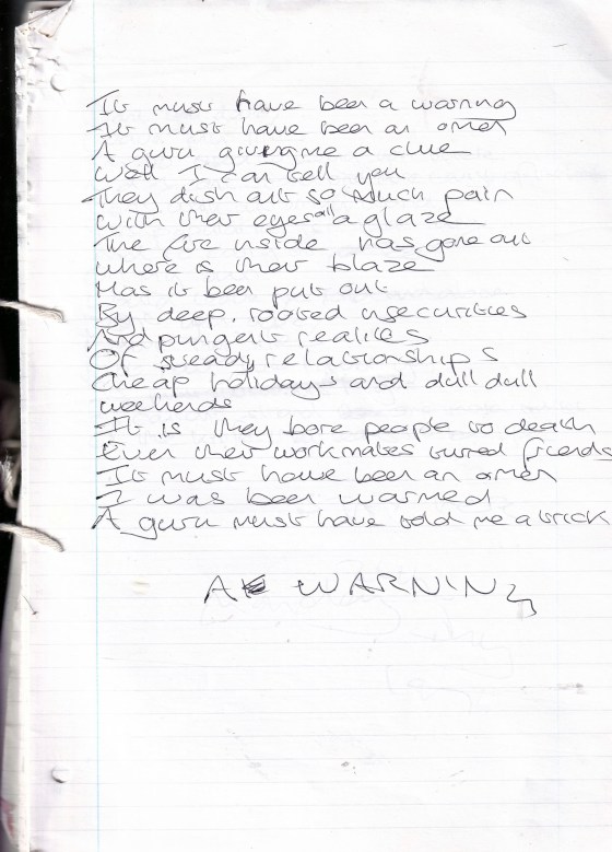 A Warning – Written Monday 26th July 1999 (Aged 24)