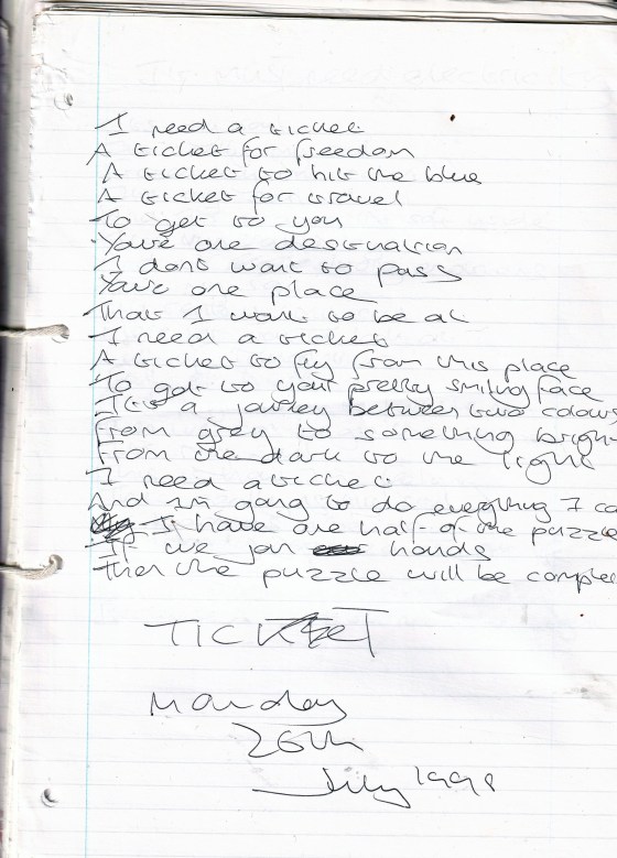 Ticket – Written Monday 26th July 1999 (Aged 24)