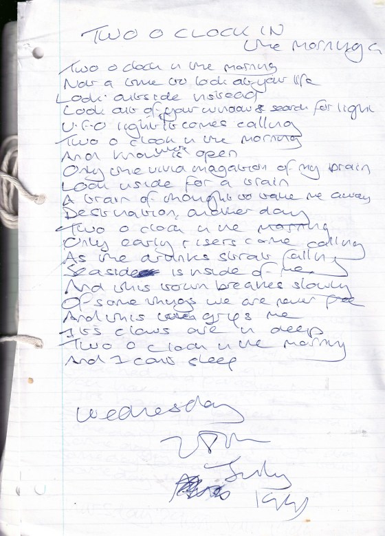 Two O’Clock in the Morning – Written Wednesday 28th July 1999 (Aged 24)