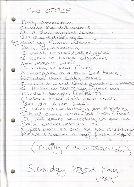 Daily Conversation (The Office) – Written Sunday 23rd May 1999 (Aged 24)