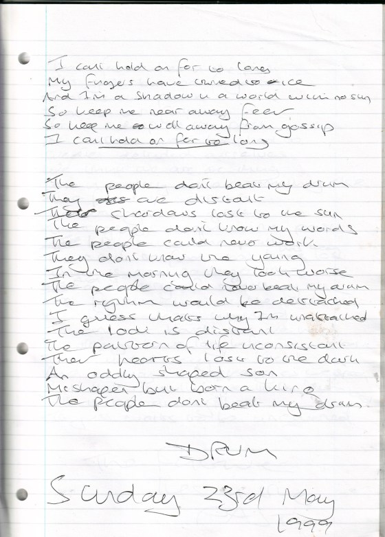 Drum – Written Sunday 23rd May 1999 (Aged 24)