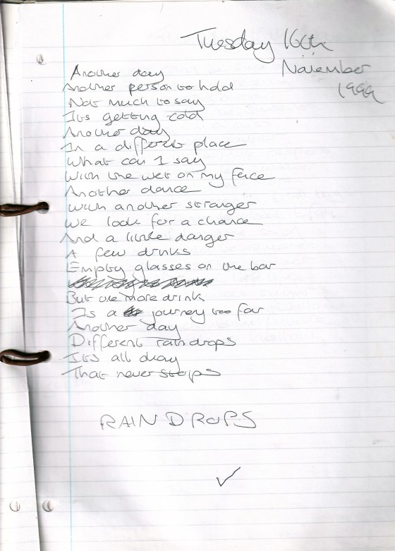 Raindrops – Written Tuesday 16th November 1999 (Aged 24)