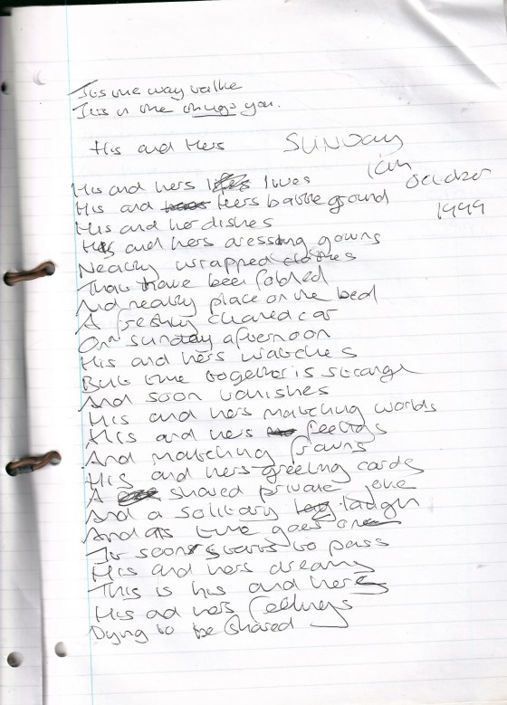 His and Hers – Written Sunday 10th October 1999 (Aged 24)