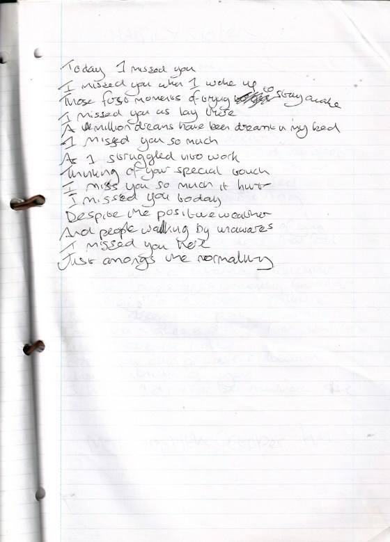 Today I Missed You – Written October 1999 (Aged 24)