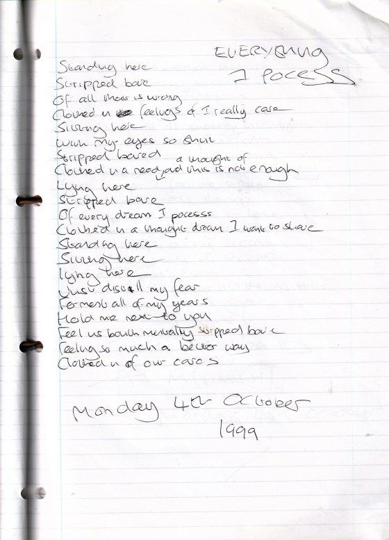 Everything I Possess – Writing Monday 4th October 1999 (Aged 24)