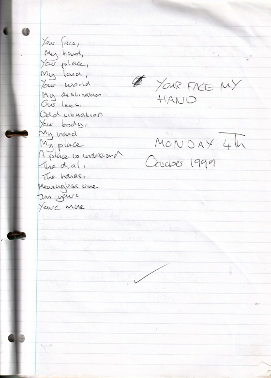 Your Face, My Hand – Written Monday 4th October 1999 (Aged 24)