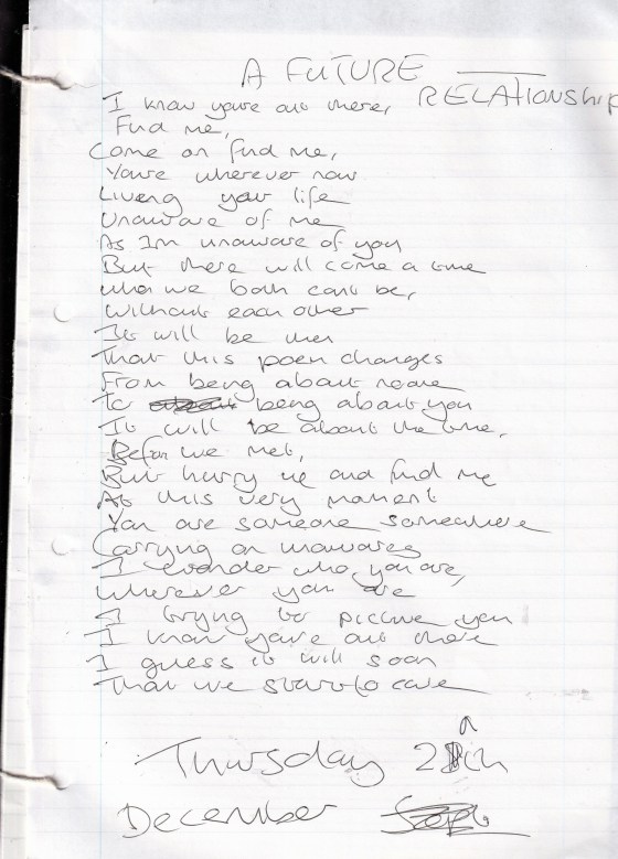A Future Relationship – Written Thursday 28th December 2000 (Aged 25)