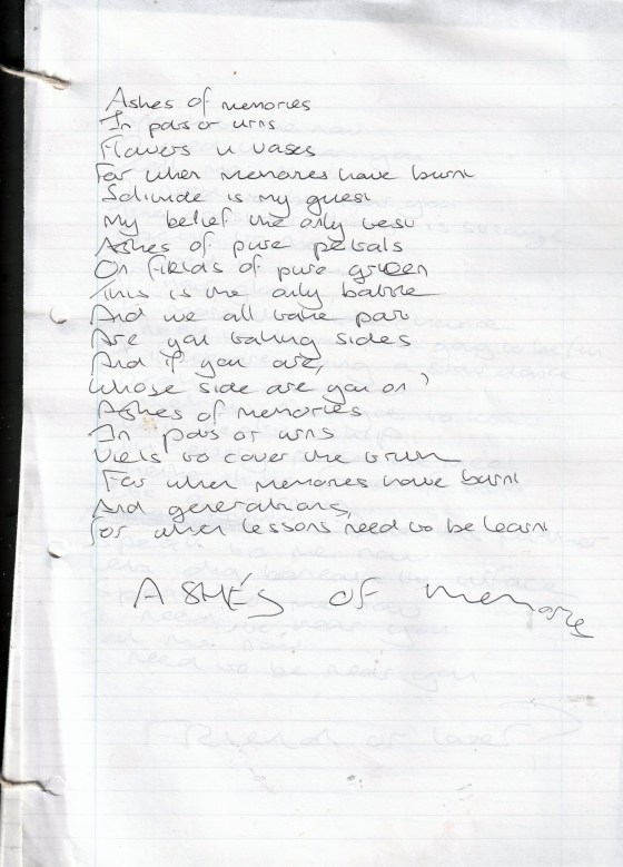 Ashes of Memories – Written November 2000 (Aged 25)