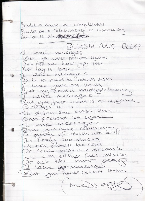 Blush and Bluff (Messages) – Written November 2000 (Aged 25)