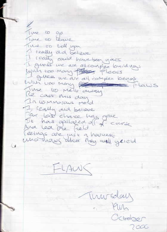 Flaws – Written Thursday 19th October 2000 (aged 25)