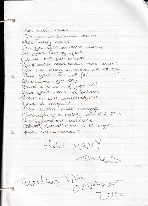 How Many Times – Written Tuesday 17th October 2000 (aged 25)
