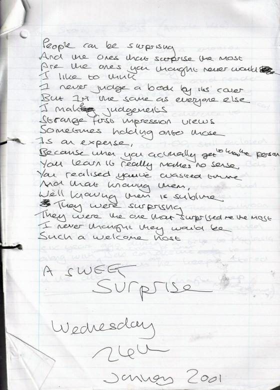 A Sweet Surprise – Written Wednesday 24th January 2001 (Aged 25)