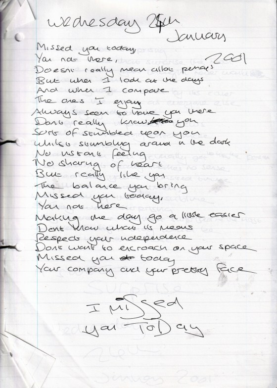 I Missed You Today – Written Wednesday 24th January 2001 (Aged 25)
