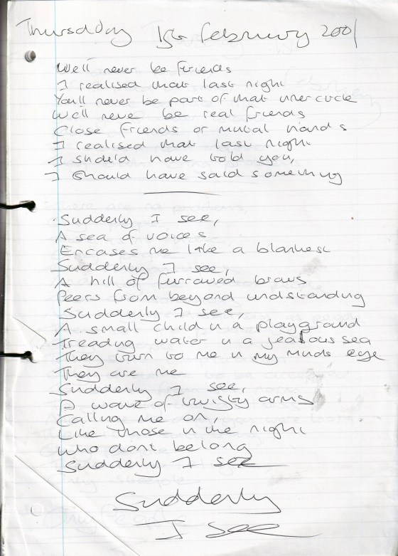 Suddenly I See – Written Thursday 1st February 2001 (Aged 25)