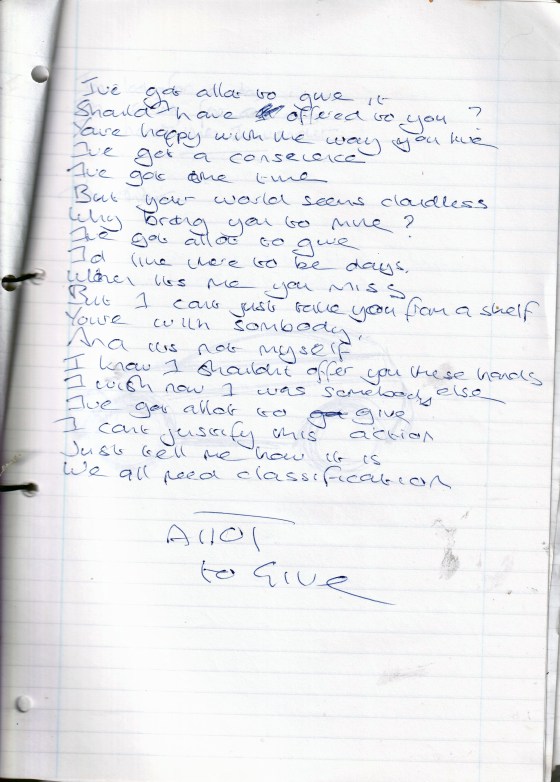Help Me To Understand Myself – Written Thursday 11th January 2001 (Aged 25)