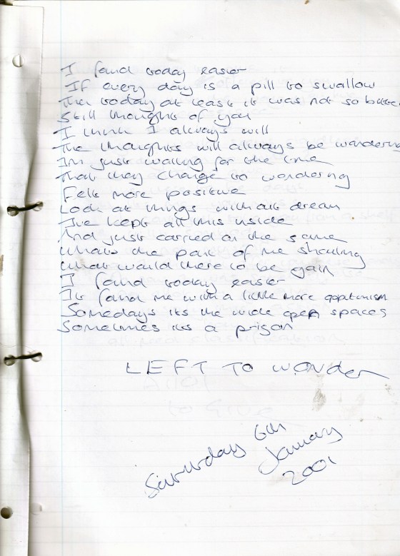 Left to Wonder – Written Saturday 6th January 2001 (Aged 25)