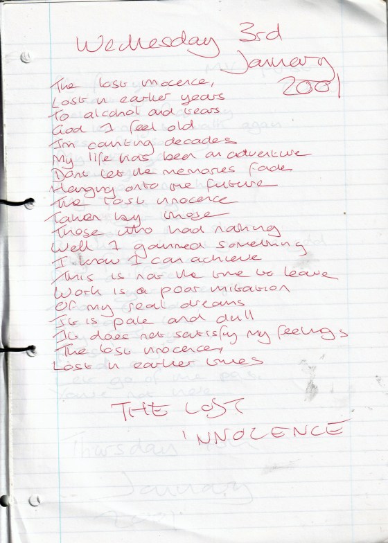 The Lost Innocence – Written Wednesday 3rd January 2001 (Aged 25)