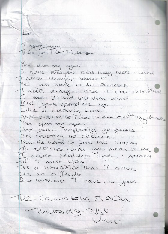 The Colouring Book – Written Thursday 21st June 2001 (Aged 26)